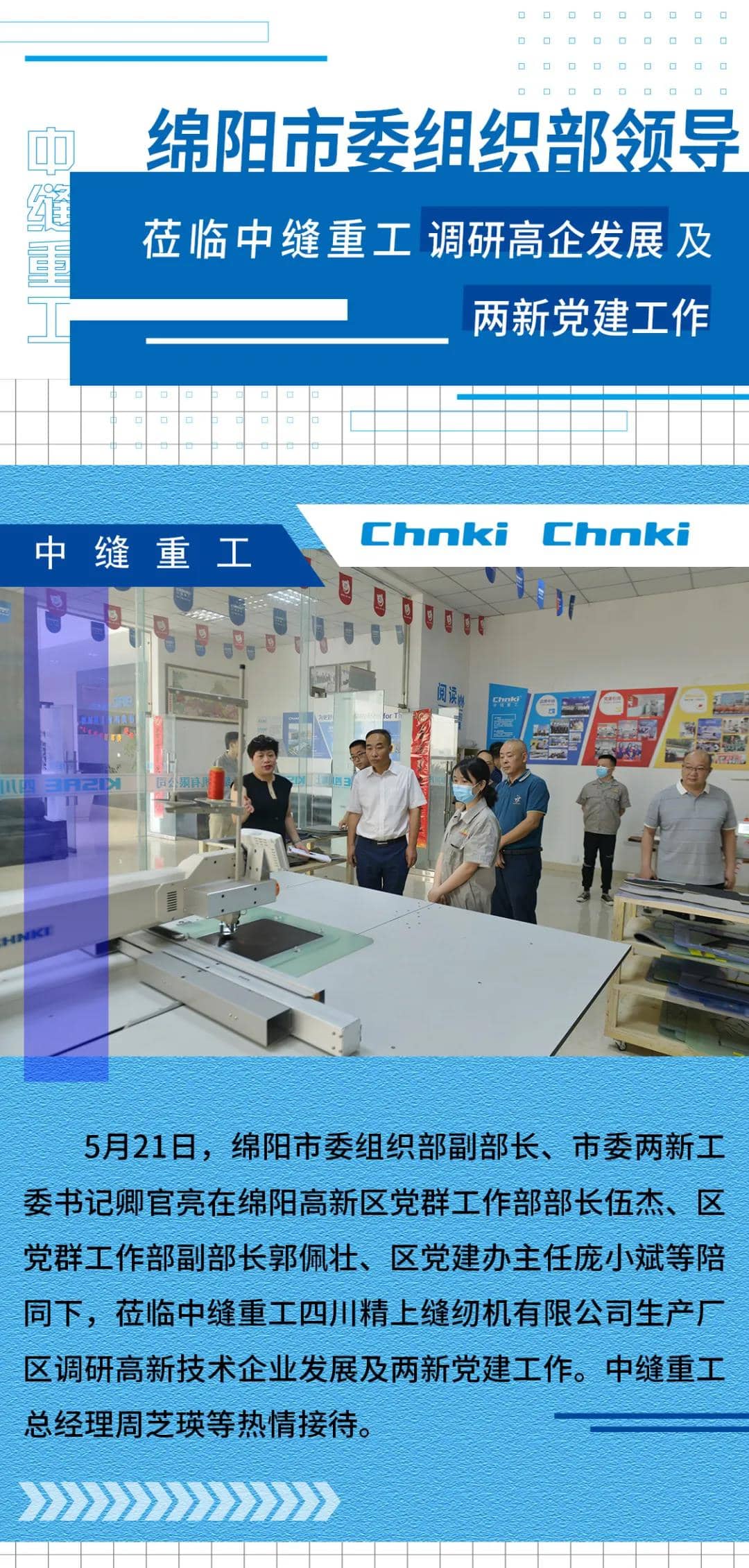 綿陽市委組織部領(lǐng)導蒞臨中縫重工調(diào)研高企發(fā)展及兩新黨建工作